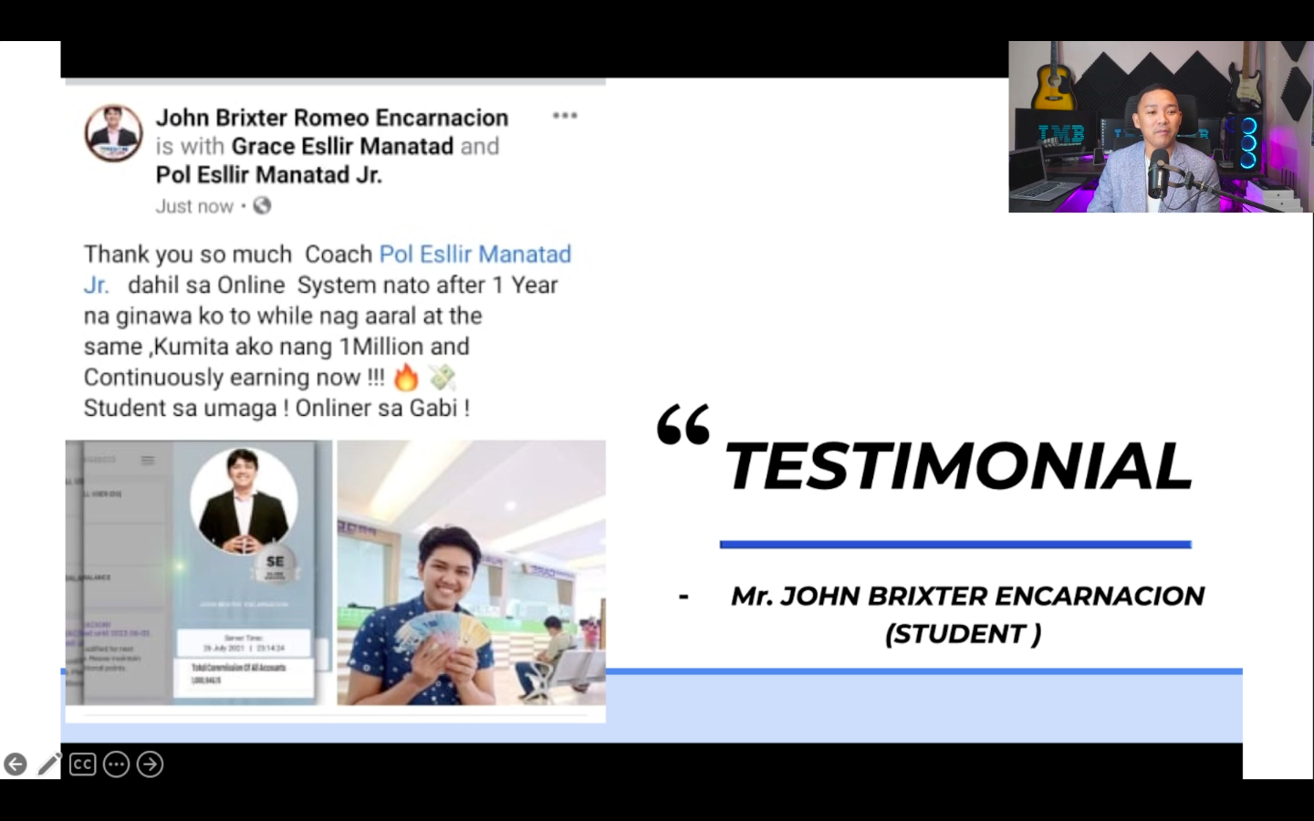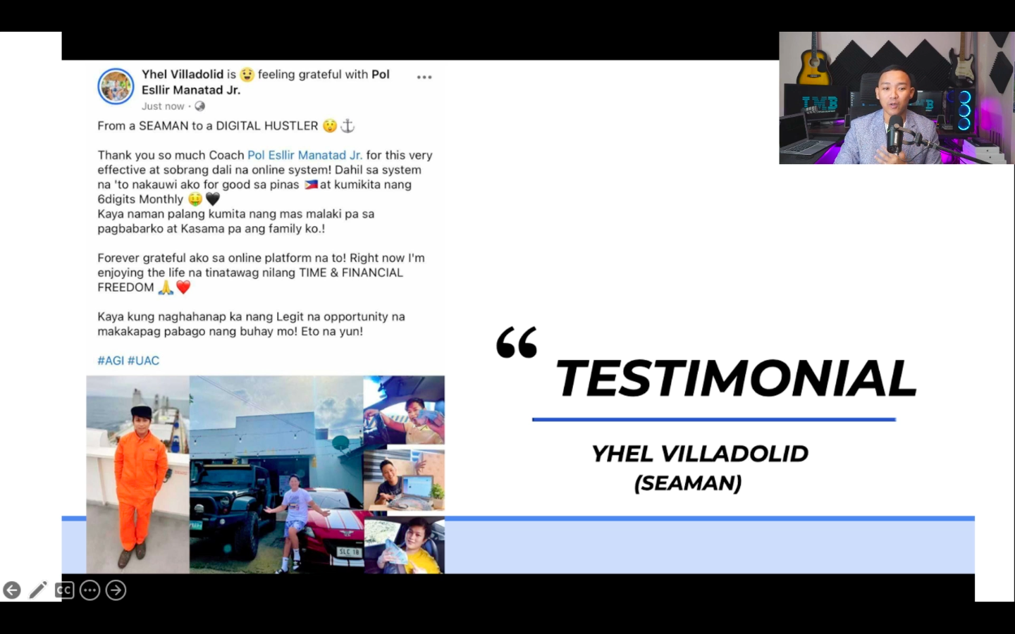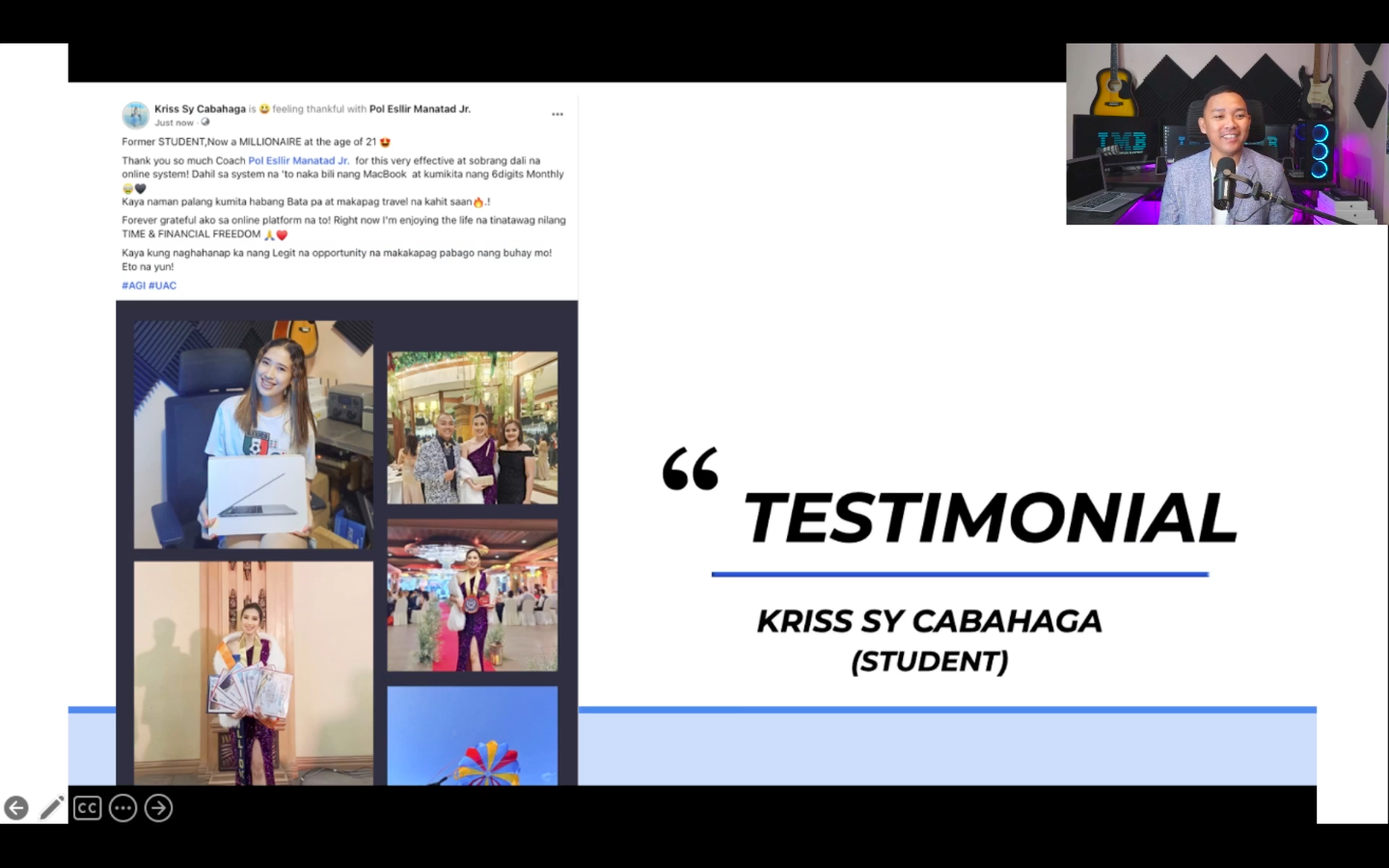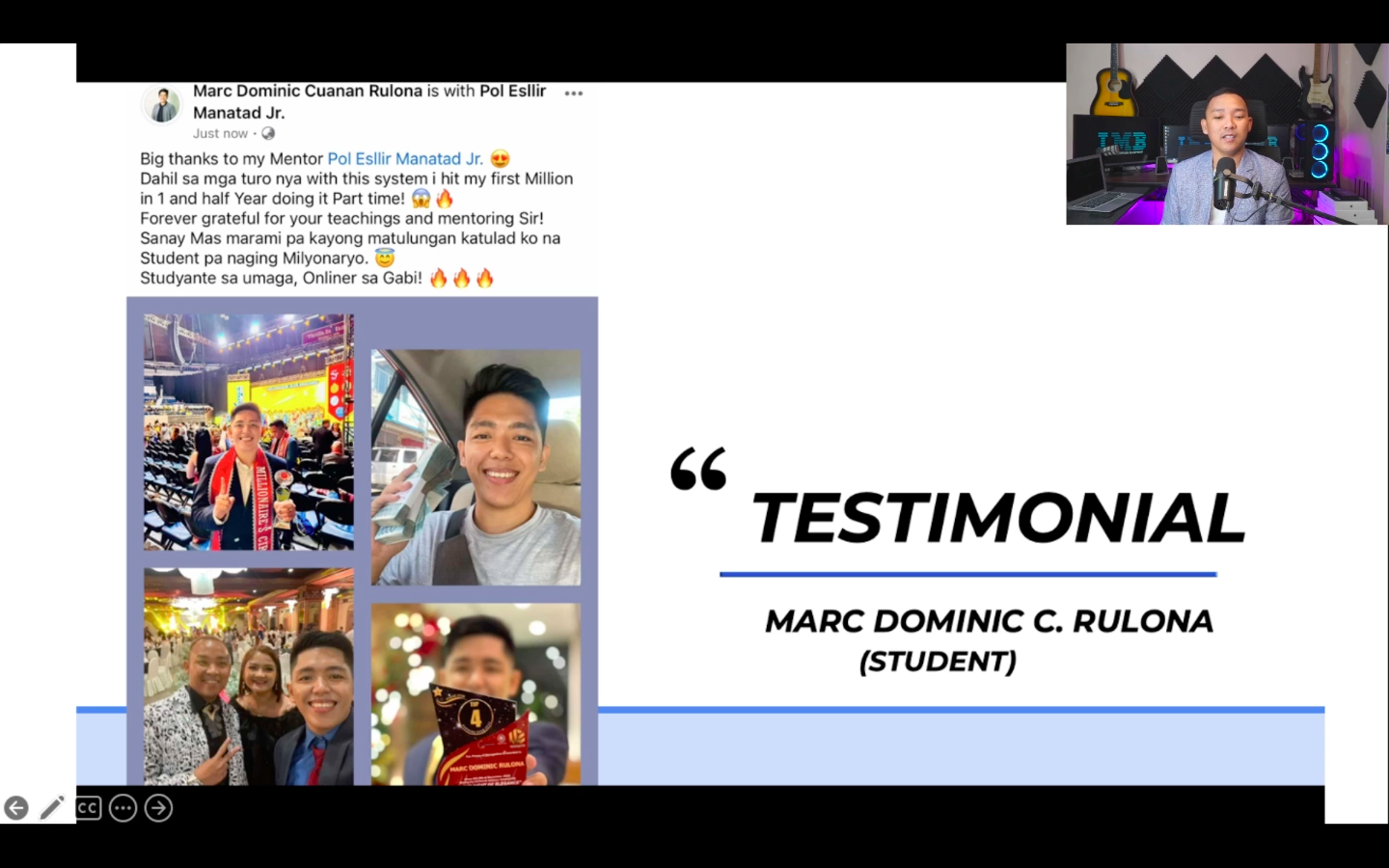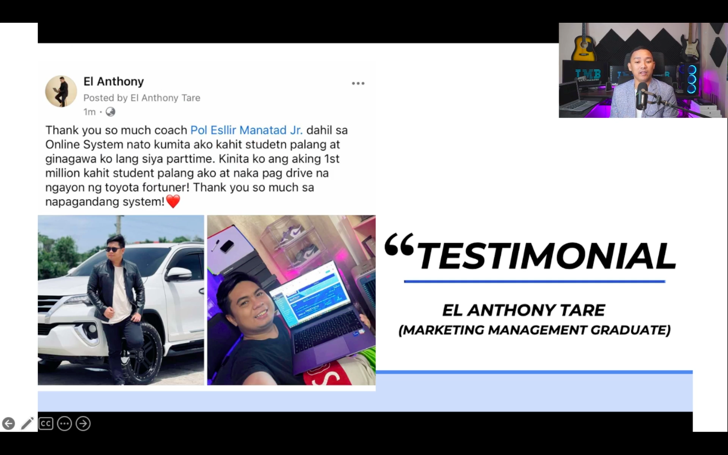 Akala ko hindi ko kaya ang Online System kasi estudyante pa lang ako at hindi ako ma techy, pero dahil sa proven and tested system na itinuro ni Coach Pol, natutunan ko lahat at naging magaling ako sa online, Sobrang nakaka amaze ang naging resulta ko.Dahil dito nabili ko ang Dream Car ko na Ford Mustang 5.0